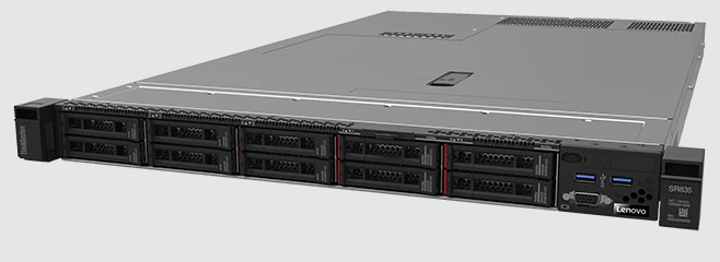 ThinkSystem SR635 es un servidor en rack 1U/1P diseñado para virtualización, bases de datos y escalamiento de almacenamiento definido por software.